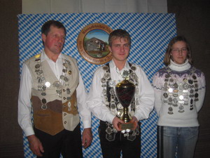 Fast hätte man in der Schüler- und Jugendklasse das Siegerfoto aus dem Vorjahr verwenden können. Zwei der drei Podestplätze gingen an die gleichen Teilnehmer wie im Vorjahr. Ganz vorne jedoch platzierte sich die Siegerin des Jahres 2004 Sabrina Schwarz. Mit ihrem 25,5 Teiler hatte Sie fast fünf Zähler Vorsprung vor den nachfolgenden Schützen. Der zweite Rang ging an den Vorjahressieger Johannes Fried mit einem 30,2 Teiler. Den dritten Rang belegte wie im Vorjahr Alois Schuster jun. mit einem 31,8 Teiler. Als Vierte verpasste Katharina Nägele den Sprung aufs Treppchen mit einem 48,9 Teiler